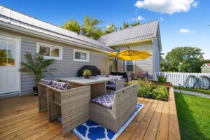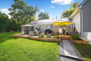 Additional features and upgrades include quartz counter tops, kitchen backsplash, generous use of pot lighting throughout, generous closet space, new metal roof in 2020, backyard firepit and C/A.
