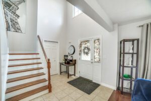 Step into the grand foyer with its soaring two-storey ceiling and be welcomed into a bright, open-concept main floor. Hardwood floors flow through the inviting living and dining areas, while the oversized eat-in kitchen features tile flooring, an eat-at island, ample cabinetry, and newer high-end Café appliances (fridge & stove). Sliding doors lead to a large back deck—perfect for summer BBQs and outdoor entertaining. The main level also includes a convenient powder room, spacious laundry room with a sink, and direct access to the attached 2-car garage.
