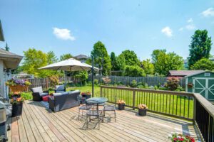 Enjoy your beautifully landscaped backyard from the spacious deck—ideal for relaxing evening meals or family gatherings.