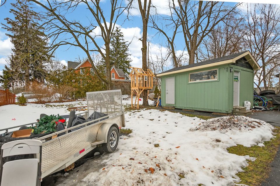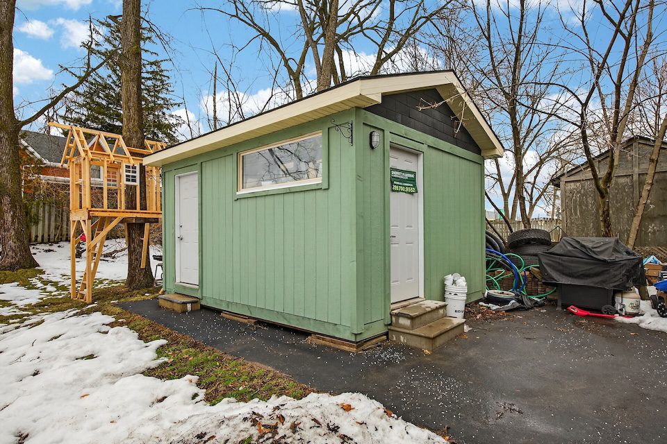 Outside, you’ll find two separate paved driveways – providing 2 spaces for the 2nd floor and 3 spaces for the main floor, a large landscaped lot with custom fencing, a wraparound side/rear porch, separate front porch, a 10 x 10 shed with power and a 12 x 16 work shed, which has it’s own panel.