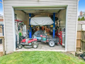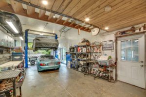 Automobile enthusiasts and hobbyists will find this property very appealing. Featuring an impressive 972 sq. foot drive-through garage capable of accommodating three vehicles, it is fully equipped to meet the needs of car aficionados. The garage includes a forced-air gas furnace, a car hoist, an integrated air compressor, 240-volt outlets suitable for welding, and a storage loft. This facility meets all the essential requirements.