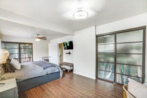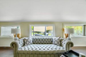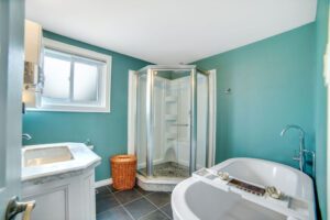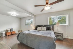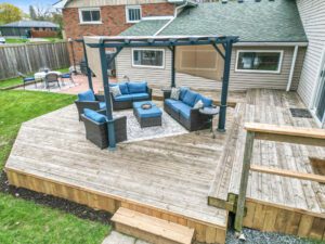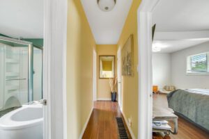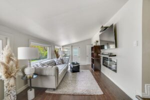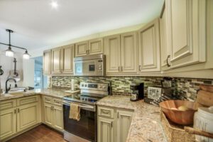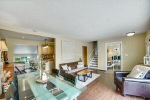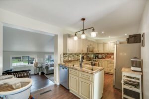 The modern kitchen and open concept design enhance the home’s appeal. The property is move-in ready, having been freshly painted and extensively updated over the years. There is easy access to a large multi-level deck, ideal for family barbecues.