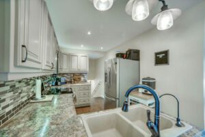 Additionally, there is a meticulously maintained and updated three-level side split residence, boasting a carpet-free environment. The house offers two plus one bedrooms, one and a half bathrooms, and a family room addition on the main floor that provides a view of the private backyard.
