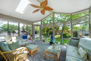 A notable feature of this home is the large three-season sunroom, professionally installed by QSI, which overlooks the beautifully landscaped yard.