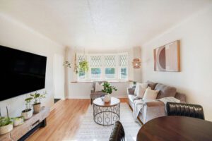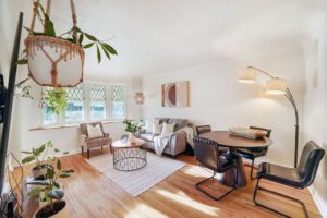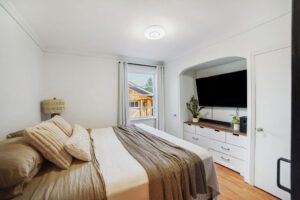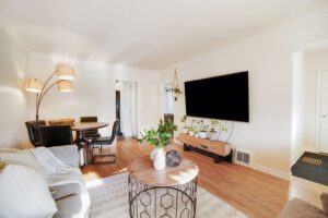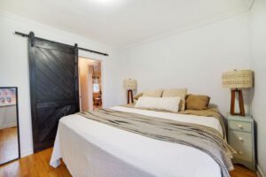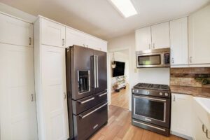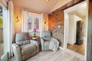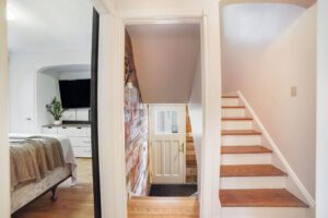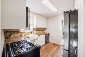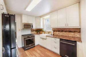 The main floor offers a charming living/dining room combo complete with big bay window & hardwood floors. The awesome kitchen is loaded with white cabinetry, gorgeous appliances (’23), including a gas stove, backsplash, farmhouse sink & heated floors. Off of the kitchen you will find a cozy new addition sitting room (’18) cladded with shiplap & beautiful french doors leading out into the backyard & deck. A roomy primary bedroom with 2 closets, hardwood floors & stylish barn door & large main bath with heated floors completes the main floor.