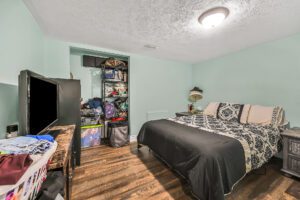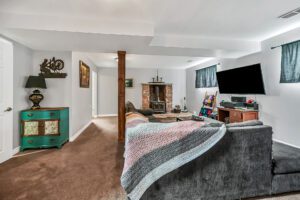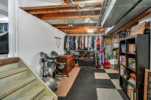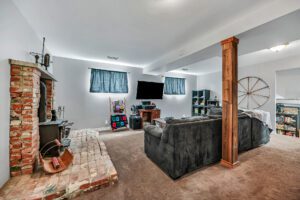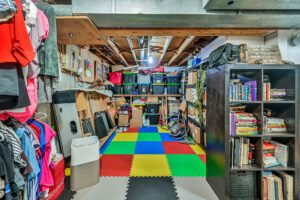 The third level offers a bright and inviting family room with above-grade windows and a cozy wood-burning fireplace, along with an updated 2-piece bathroom and a laundry room with sink and storage. The basement features a large unfinished storage room with built-in shelving, a utility room, and a bonus room currently used as a bedroom.