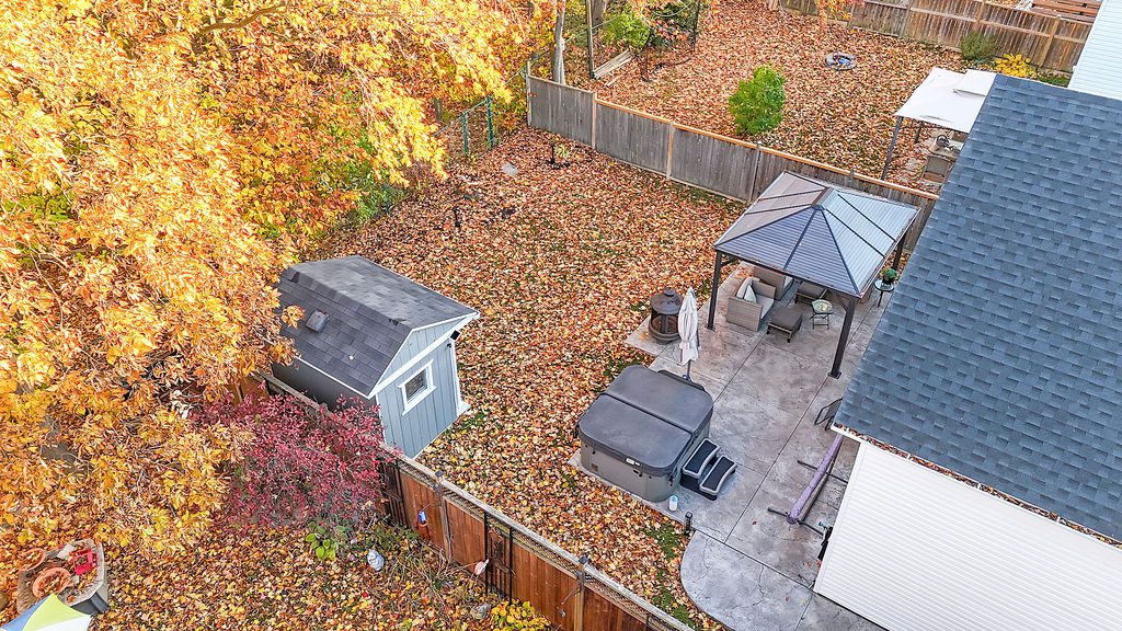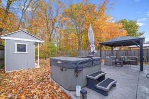 Additional amenities include a garden shed for extra storage. Recent updates include new shingles (2017), front windows (2022), a hot tub (2018), fully renovated main bath (2024), washer and dryer (2023).