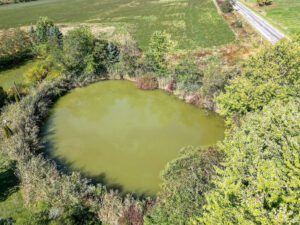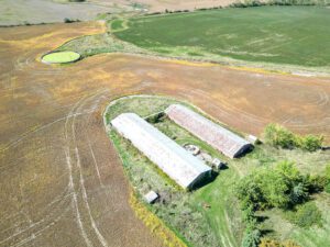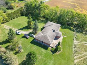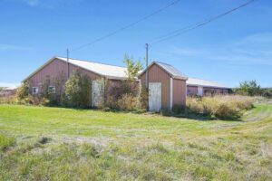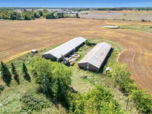 Previously operated as a hog farm, the property features two insulated barns—one measuring 6,400 sq. ft. and another at 4,000 sq. ft.—both constructed in 1978. A well-treed lot provides substantial privacy and includes two ponds. Separate driveway access to the barns.