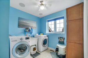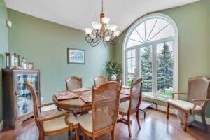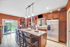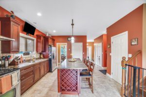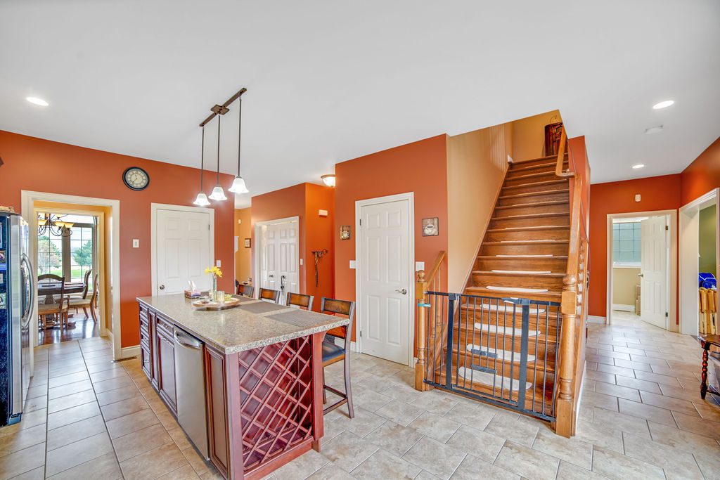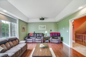 The main level is adorned with hardwood and tile flooring and includes a large eat-in kitchen with cherrywood cabinetry, an island, and a walk-in pantry. The primary bedroom comes complete with a luxurious five-piece ensuite and a walk-in closet.
