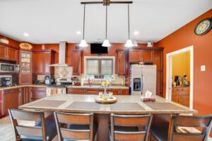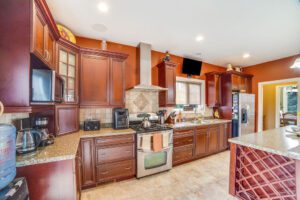 Additional features and upgrades include two garden sheds, an owned tankless water heater, an owned water softener, a 200-amp service, a backup generator, stereo speakers wired throughout the home, a heated garage (heater requires a repair), a theatre projector system, and a new gas furnace installed in 2022.
