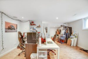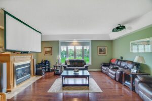The lower level features a massive rec room with plumbing for a wet bar, a three-piece bathroom, and a fourth bedroom currently utilized as storage.