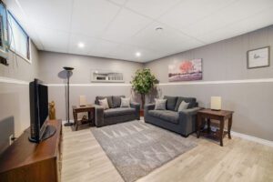 The lower level is partially finished featuring a rec-room with easy care laminate flooring and a 2-piece bathroom that is ready for updating.