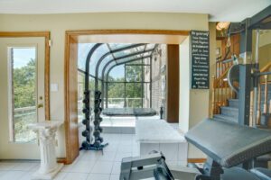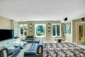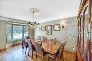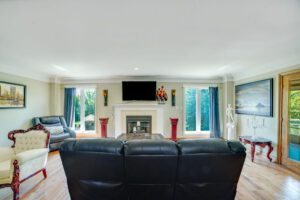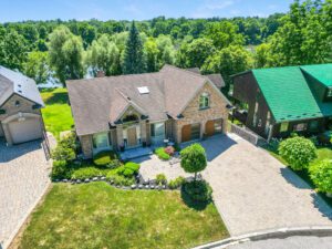 Boasting over 4,300 square feet of living space, the property offers ample accommodation for a growing family and features four bedrooms, three bathrooms, and an in-law suite with a private entrance. The unique floor plan includes two expansive family rooms, each equipped with fireplaces—one further enhanced by a wet bar—a formal dining room, a spacious and modern eat-in kitchen, a dedicated home office, a primary suite with multiple closets and a luxurious ensuite, a solarium with built-in hot tub, main floor laundry, and a gym. Multiple exits lead to several private seating areas, strategically positioned to capture the tranquility and views of the river. The quiet court location further enhances the peacefulness and exclusivity of this remarkable property.